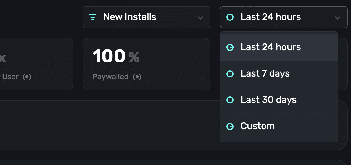 • New Installs: Represents users who installed your app within the selected time frame.
