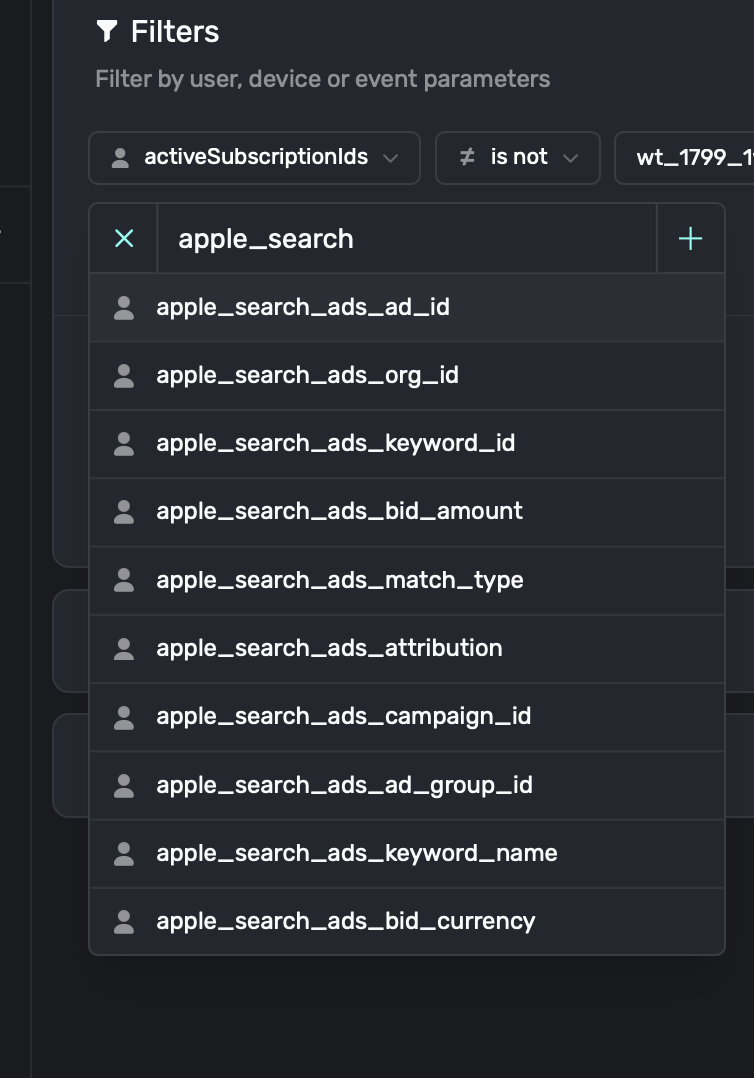 Use data from Apple Search Ads in our charts as a breakdown and filter: