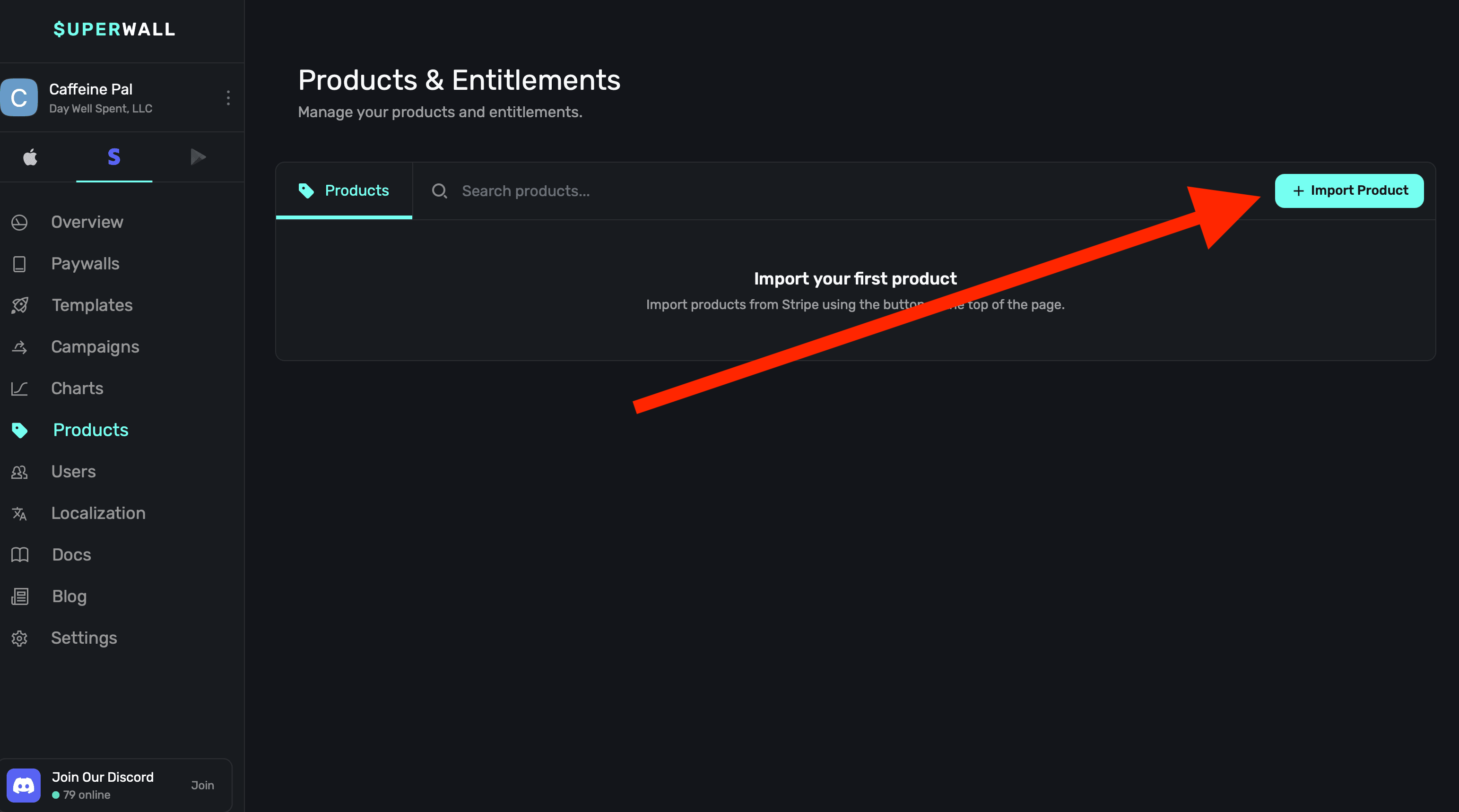 Once your app is configured with Stripe or Paddle, you can create products in your provider of choice to show on your web paywalls. To get started, click on Products from the overview page:
